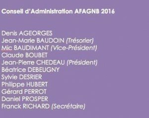 Suite à l'Assemblée Générale de l'AFAGNB qui s'est tenue à La Celle Condé le 20 février dernier, vous trouverez ci-dessous la composition du nouveau Conseil d'Administration.